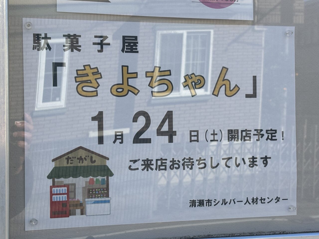 「駄菓子屋きよちゃん」がオープンする場所は、「清瀬市シルバー人材センター」となります。
